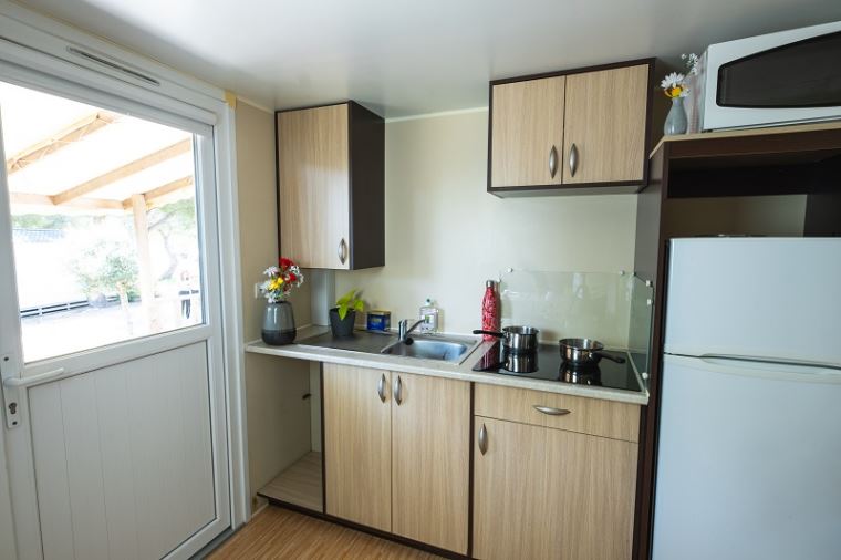 24m² - Terrasse|- Küche: -Kaffee Spüle – Herd (4 Platten) – Mikrowelle – Kühlschrank